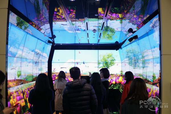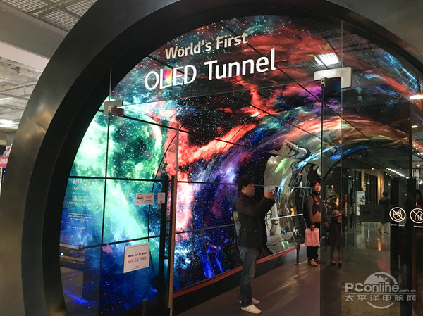 在首爾南山塔上,LGD部署了非常多的OLED曲面顯示屏幕,包括各種不同曲率、不同形態的OLED墻,OLED屏幕隧道、3D OLED屏幕,甚至波浪形的OLED屏幕,這也是首個如此大面積使用OLED顯示屏的商業場所。